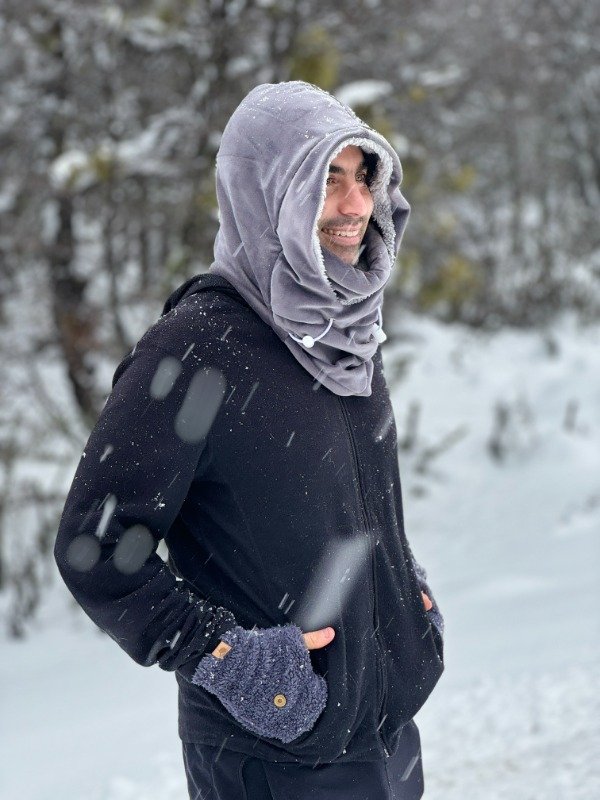 Capucha y cuellito todo en uno, con elásticos para ajustar y que el frío no pase.